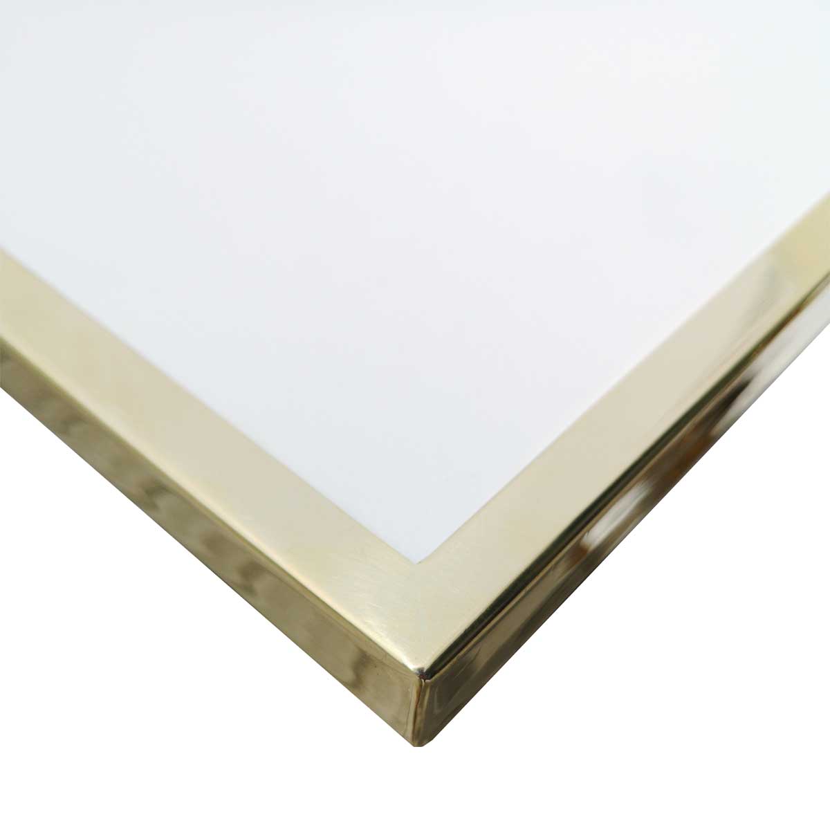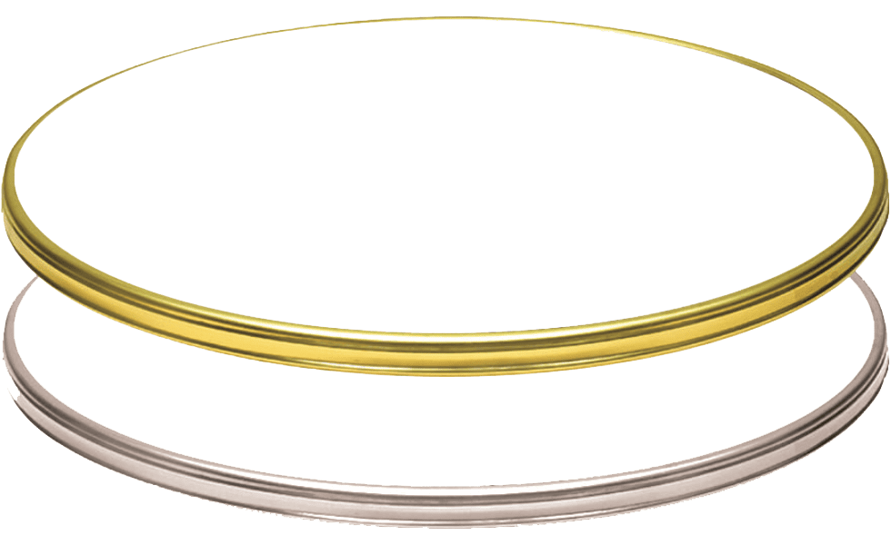 The variety of decors is complemented and rounded off by the decorative edge. In addition to the elegant, visual accentuation of the design, the different profiles provide additional protection for the edge of the table. Our bistro collection includes square table tops in the sizes 21.5×21.5″, 24×24″, 28×28″, as well as round table tops with a diameter of 24″ and 28″. The decorative edges are available in gleaming chrome, classic brass and timeless stainless steel.